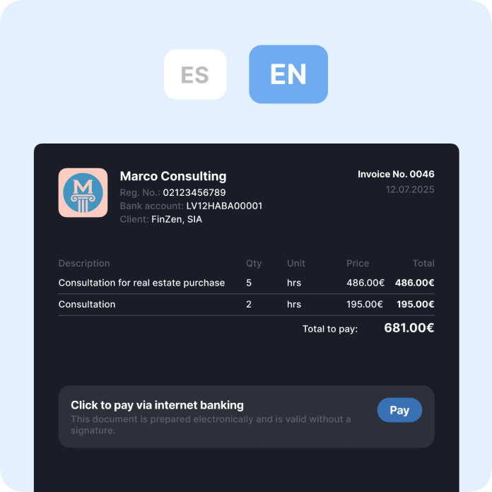 Factura en diferentes idiomas