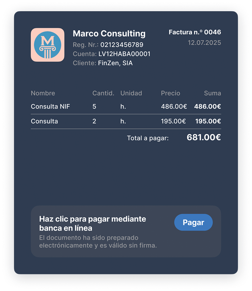 Conta.es convierte la emisión de facturas en parte de un ciclo completo: del catálogo al banco, del estado al informe. No simplemente “emitir y enviar”, sino también vincular, clasificar y contabilizar